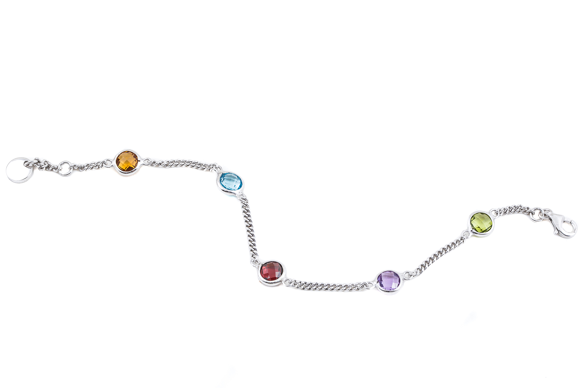 Silver rainbow bracelet – Silver bracelet w/ small rd 6 mm stone in 5 colors