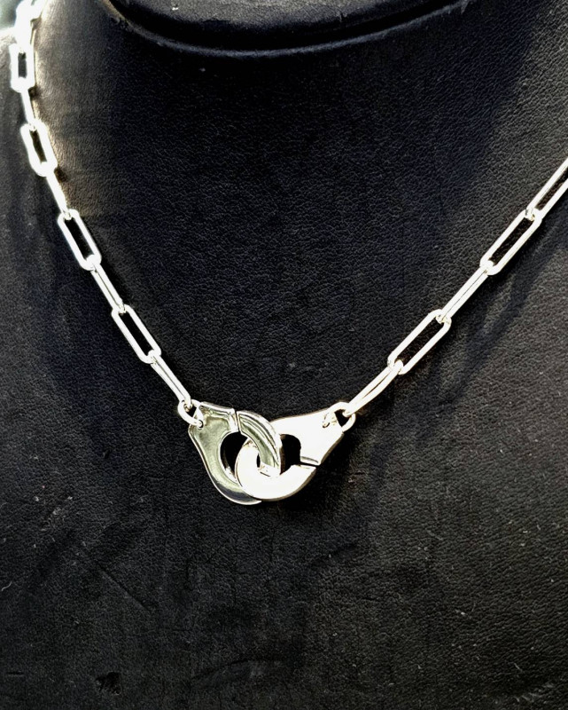 Silver long link chain with handcuff